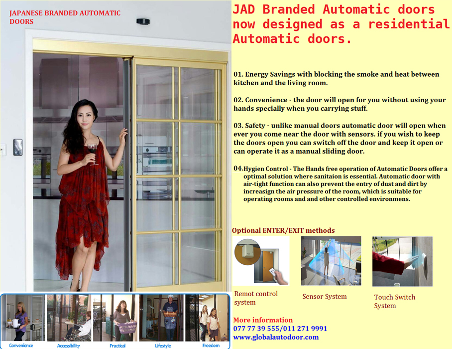 Global Automatic Door International Company, is the only company in Sri Lanka to offer special state-of-the –art, three in one Automatic Doors for residences.